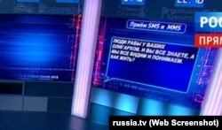 Сообщения от телезрителей выводятся на большой экран в студии. Некоторые из них весьма неудобные